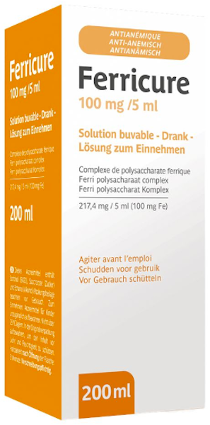 Ferricure® contains, as its active ingredient, an extremely water-soluble iron–polysaccharide complex characterized by a low molecular weight and an iron content (ferric content) of approximately 46%. The iron in Ferricure® is present in ferric form. The iron–polysaccharide complex (ferric polysaccharide) results from a chemical complexation of iron with polysaccharides derived from the partial hydrolysis of starch under specific conditions. This complex contains a higher ferric content (46%) compared to ferrous salts.