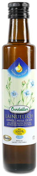 Ourdaller Linseed Oil, with its rich yellow color and slightly tangy taste, contains the highest level of alpha-linolenic acid (also known as omega-3 fatty acid) compared to other edible oils. This essential fatty acid—vital to human health—is found only in small amounts in various foods. It is therefore important to consciously include it in our daily diet.