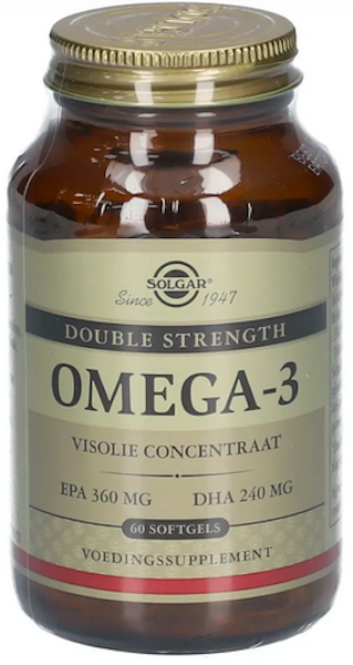 Solgar Omega-3 Double Strength supports heart function. EPA and DHA are essential components of the brain, play a role in cognitive function, and contribute to healthy vision. The desired effects can be achieved with a daily intake of 250 mg of EPA and DHA (including from food sources), or 450 mg for pregnant and breastfeeding women.